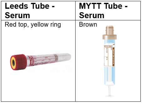 Leeds – Red top, yellow ring. Serum sample.