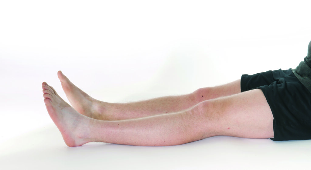 Lay on the floor or a bed with both legs straight.