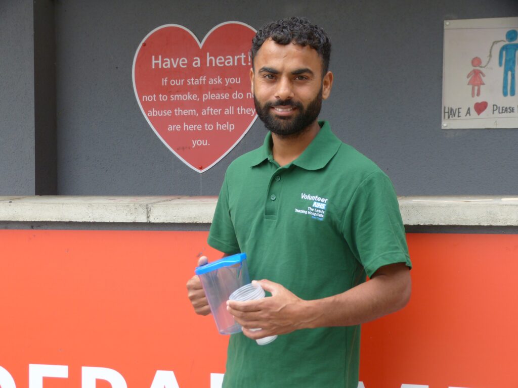 Aakash, a district nurse originally from India, is volunteering while also studying for a Masters in Public Health. He said: “I support patients, offer them drinks, if any assistance is needed by anyone I’m here to help. I really enjoy volunteering here and it’s helpful for me to get this experience. I’m working on my communication skills and learning new things.”