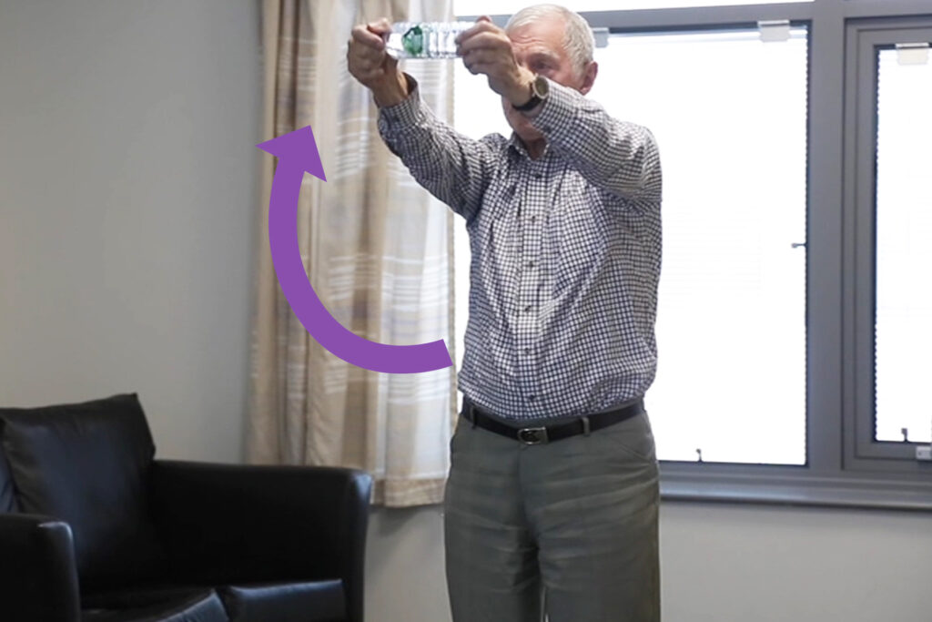 Keeping your arms straight, raise the object until you are holding it above your head for three seconds.
