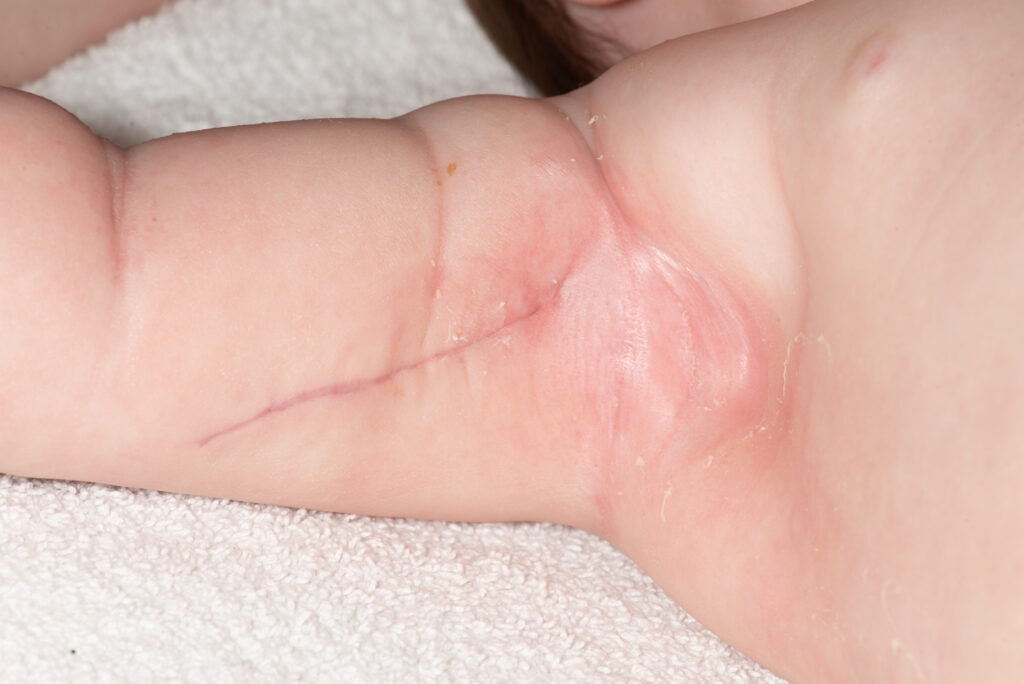 It is normal for the armpit to be reddened and wet – do not use any moisturising cream until 48 hours after the bandages are removed.