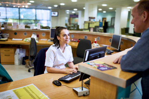 When you arrive for your treatment you should go to the radiotherapy main reception desk at the entrance of the radiotherapy department.