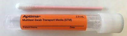 We would like to also remind users that the new platform requires a different swab for the diagnosis of genital ulceration. Please no longer send Copan UTM-RT (red top tubes) but instead send Aptima STM (orange labelled tubes – see image below).
